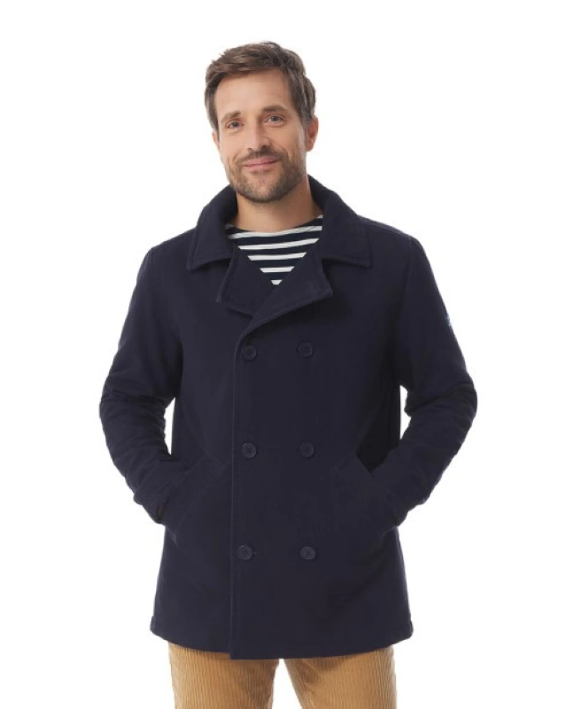 This men's quilted pea coat is a must-have from the winter collection! Made from a cotton canvas, it features a quilted lining to keep out the cold. You'll love the large collar and double-breasted buttoning on this men's canvas pea coat. Perfect for bringing nautical style to the heart of the city!