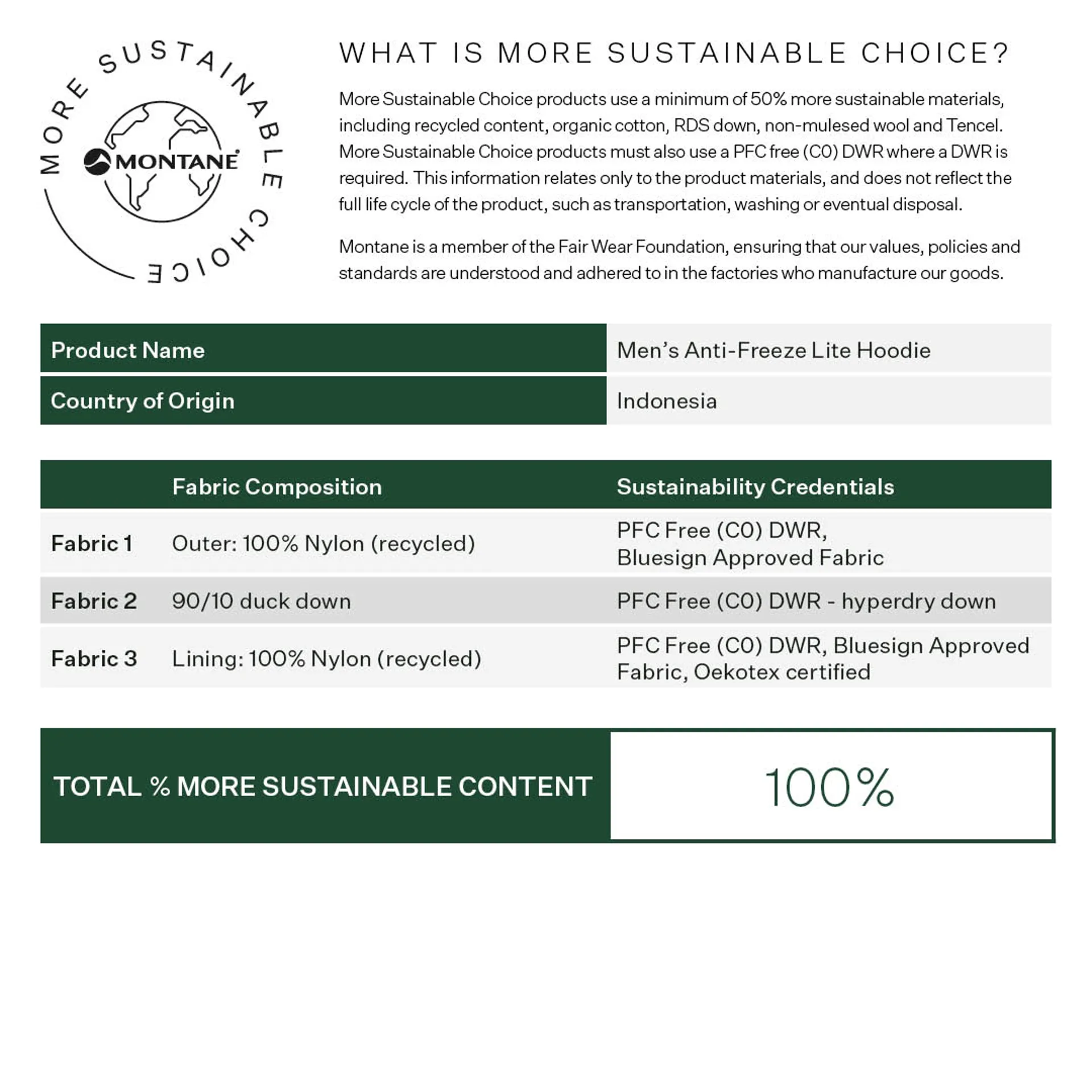Question(s) answered about Montane Men's Anti-Freeze Lite Hooded Down Jacket - Alder Green