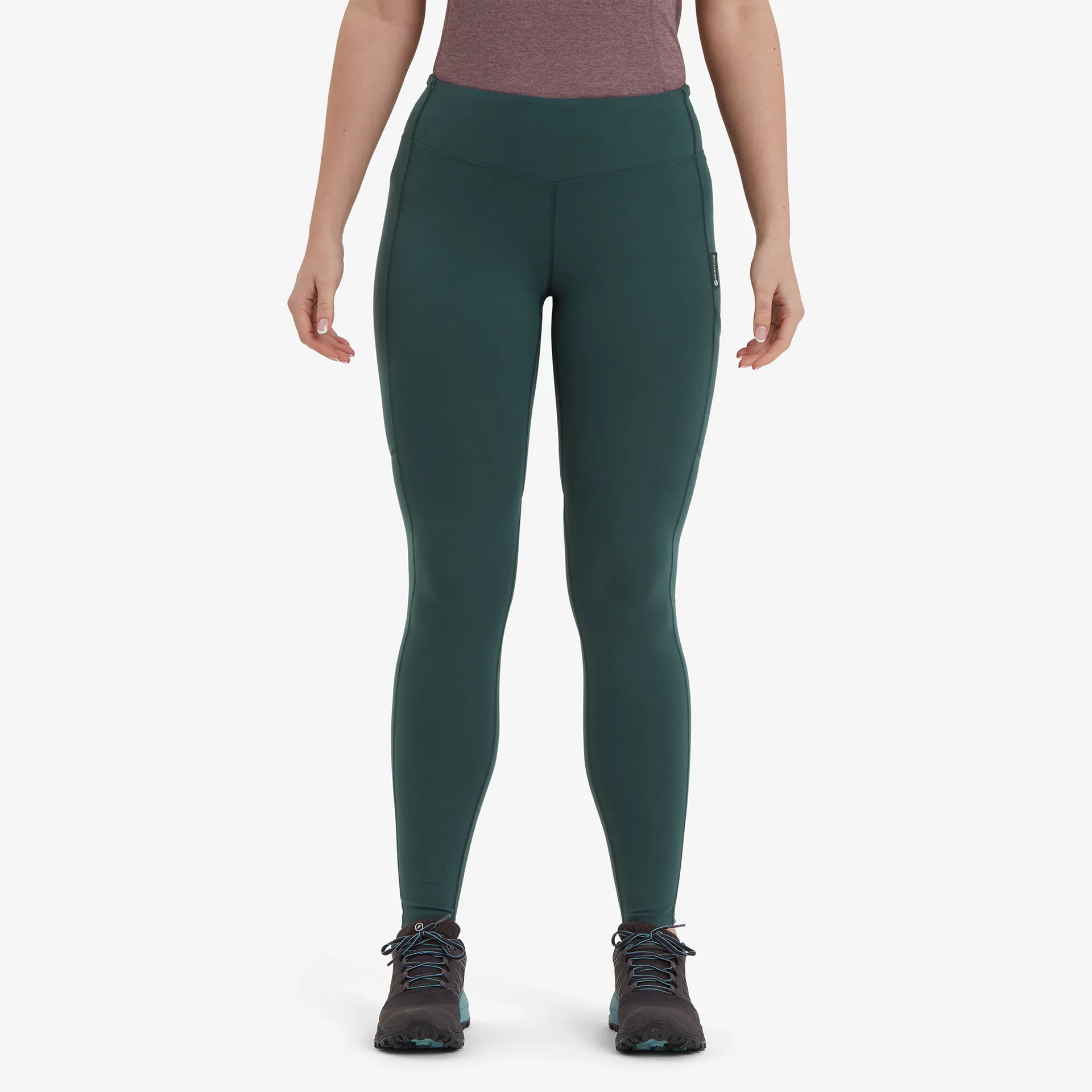 The Montane Women's Ineo Lite Legging Pants have been designed with a flattering next to skin silhouette with a deep stretch waist band using a super stretchy fabric which includes concealed waistband pockets and a thigh pocket ideal for snacks or a mobile phone. Constructed from a Mala Lisson stretch fabric with POLYGIENE® permanent odour control that offers comfort and freedom of movement which enhances mobility.